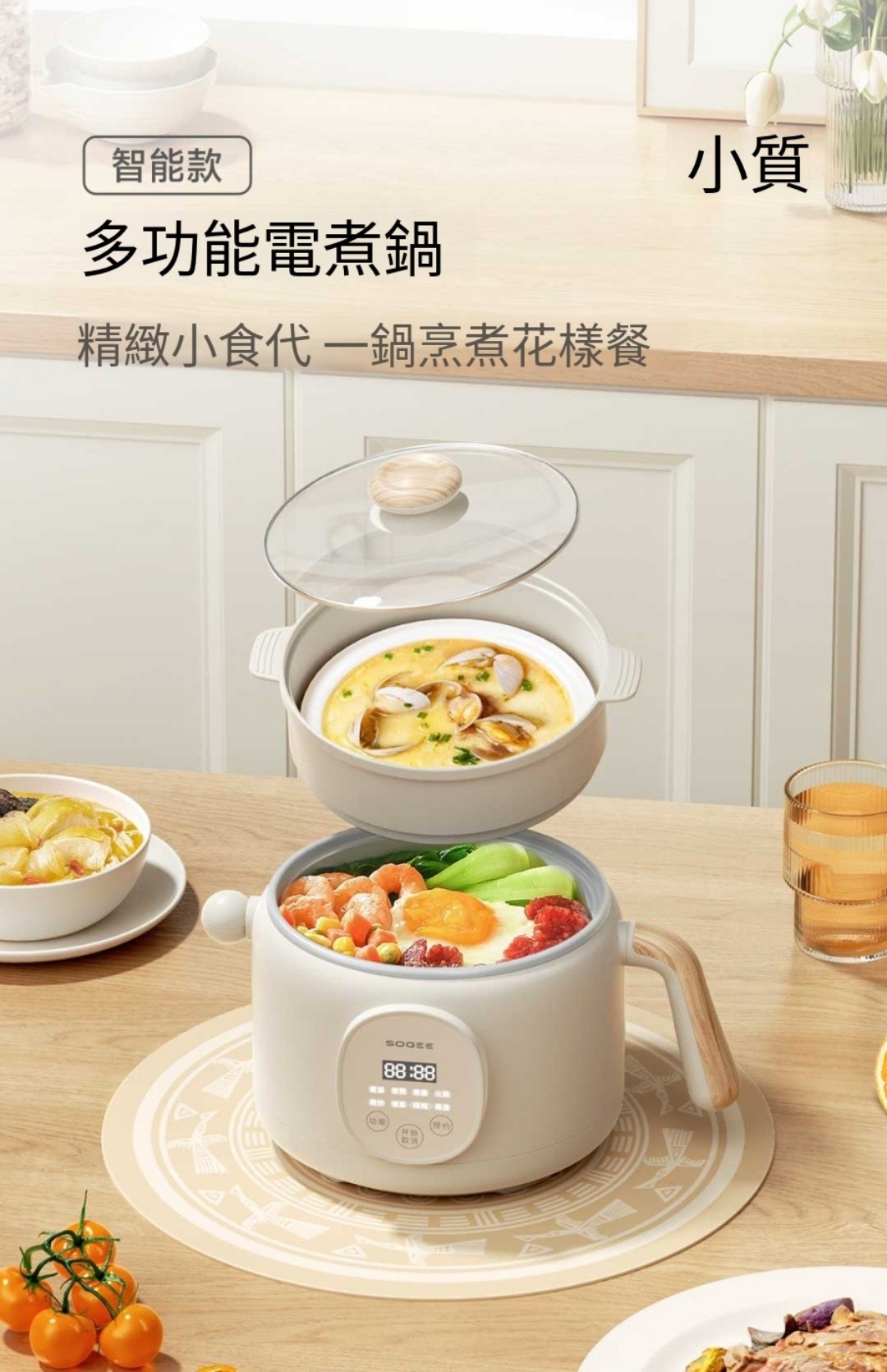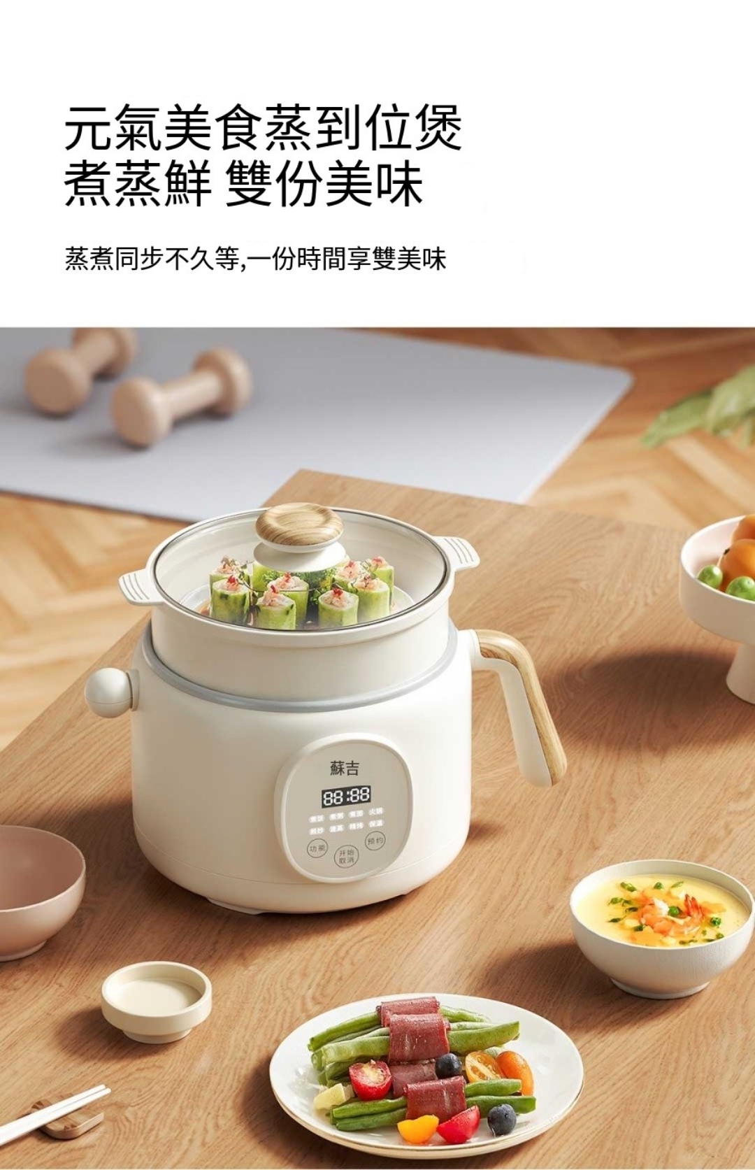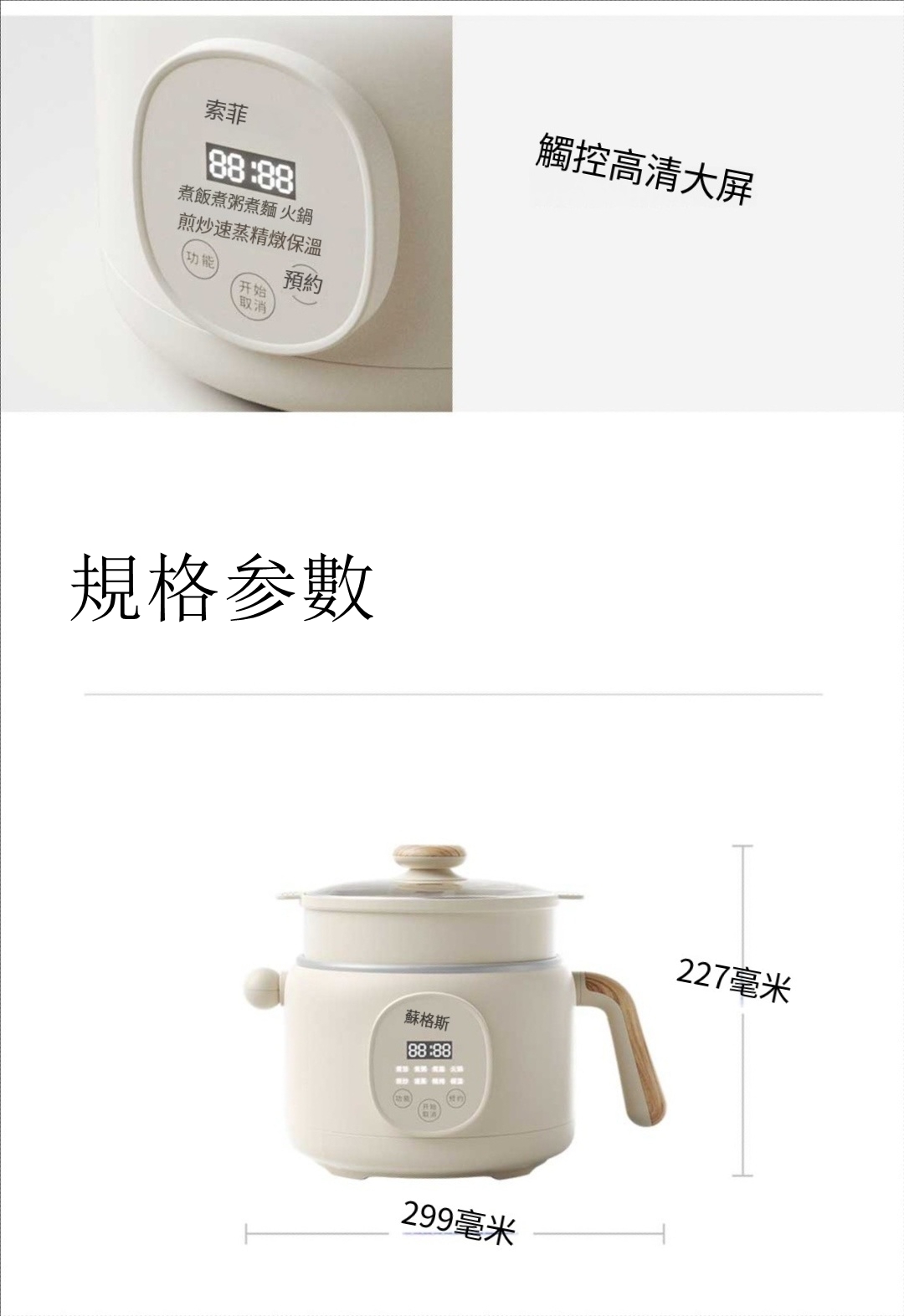 智能控制: 支援多種烹飪模式,方便操作 多功能: 可用於煮飯、蒸煮、燉湯等多種用途 蒸籠設計: 附加蒸籠,提升蒸煮效率 安全設計: 具備過熱保護功能,使用更安心 尺寸: 約300mm(直徑)x 200mm(高) 顏色: 現代設計,適合各種廚房風格
