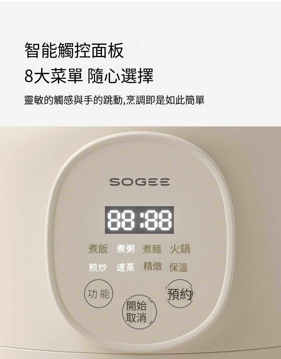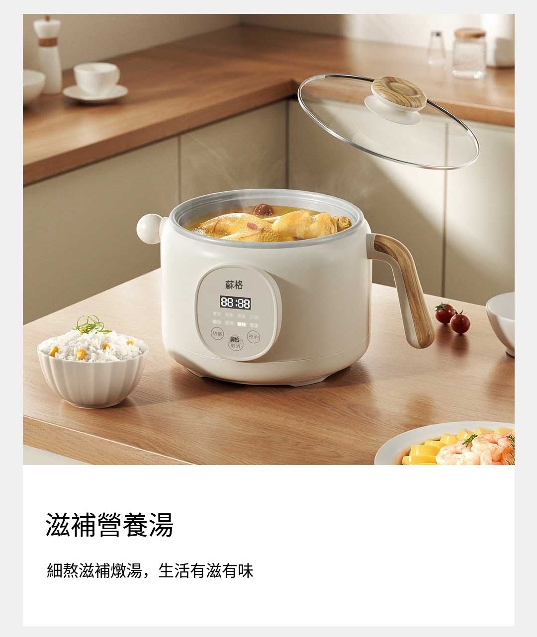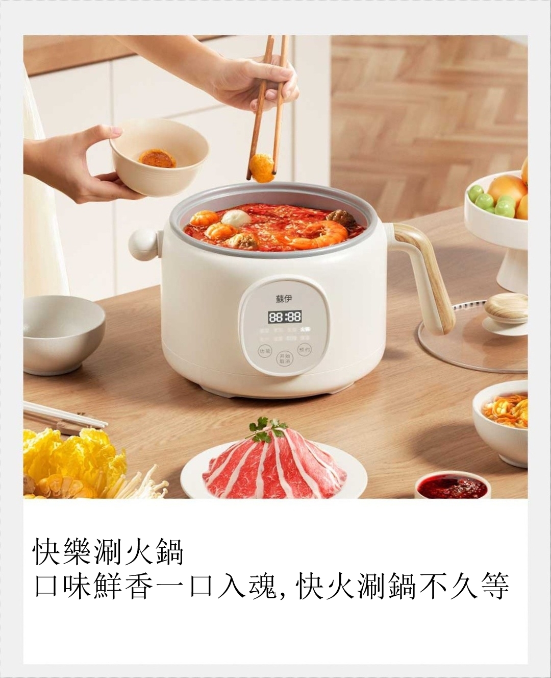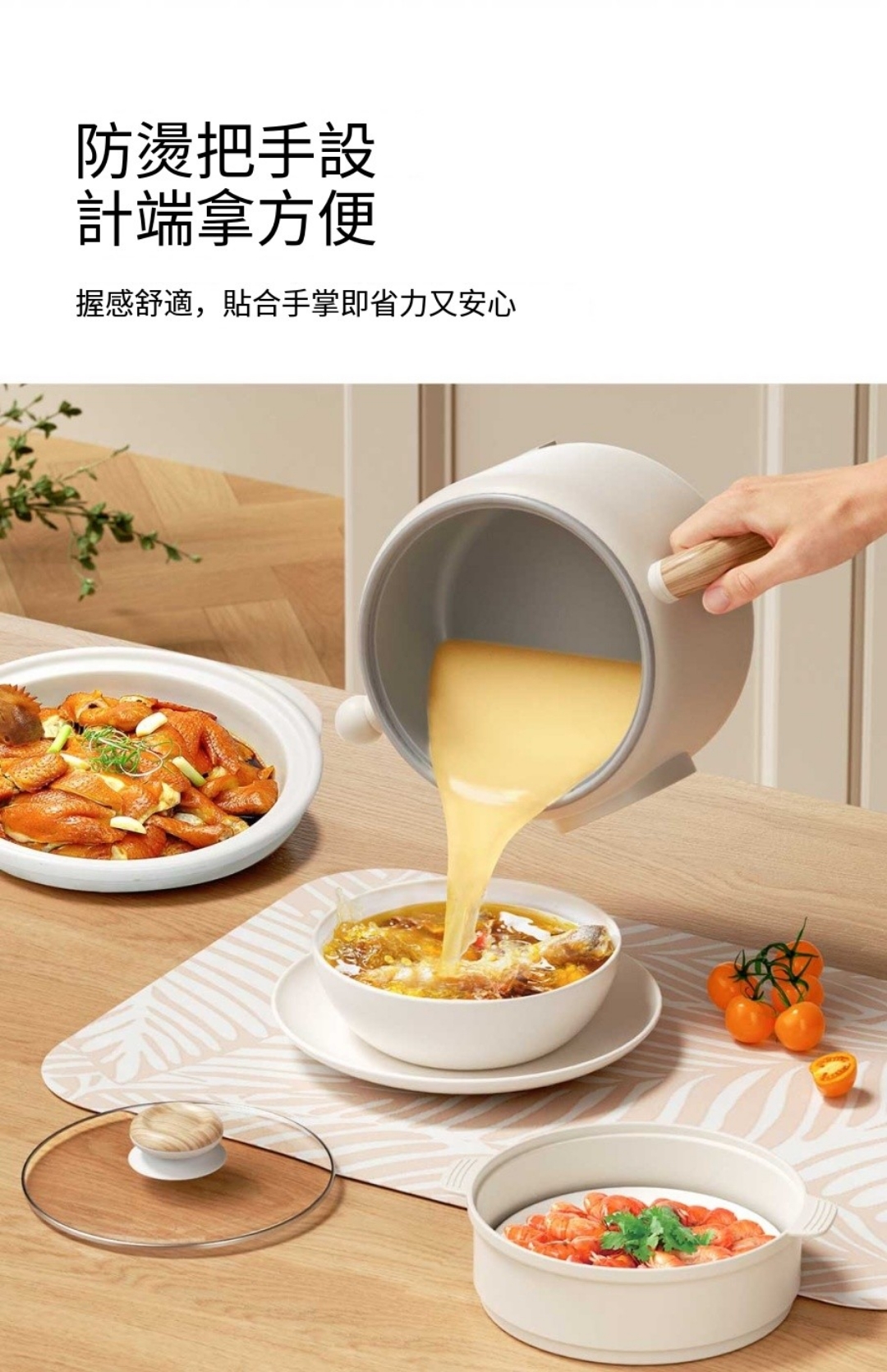 智能控制: 支援多種烹飪模式,方便操作 多功能: 可用於煮飯、蒸煮、燉湯等多種用途 蒸籠設計: 附加蒸籠,提升蒸煮效率 安全設計: 具備過熱保護功能,使用更安心 尺寸: 約300mm(直徑)x 200mm(高) 顏色: 現代設計,適合各種廚房風格