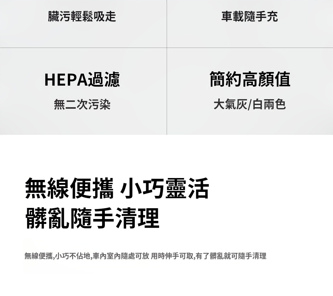 無線便攜 臭氧殺菌 5500Pa大吸力 HEPA過濾 無線便攜