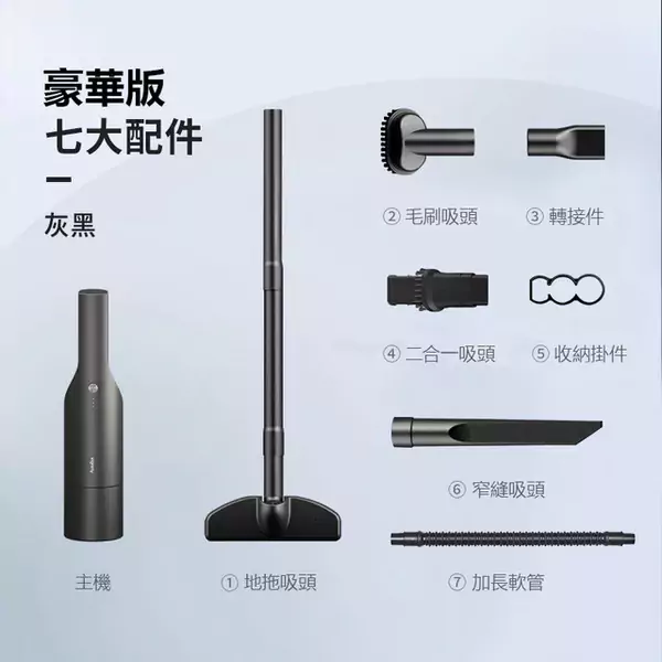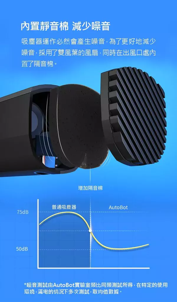 ◎AutoBot V3 吸力達10000 pa ◎內置3節2000mah動力電池,充滿電約可使用13min長續航,一次充電採用更久,搭載TYPE-C接口,正反向可充,約2.5-3h充滿 ◎複合PET+HEPA濾芯雙重過濾系統,淨化效果出眾 ◎外觀一體化設計,機身後部以酒瓶瓶頸線條收尾,曲線設計讓手感更舒適 ◎採用了二合一的吸嘴設計,無論是收納還是使用都更加方便 ◎內置靜音棉, 減小噪音